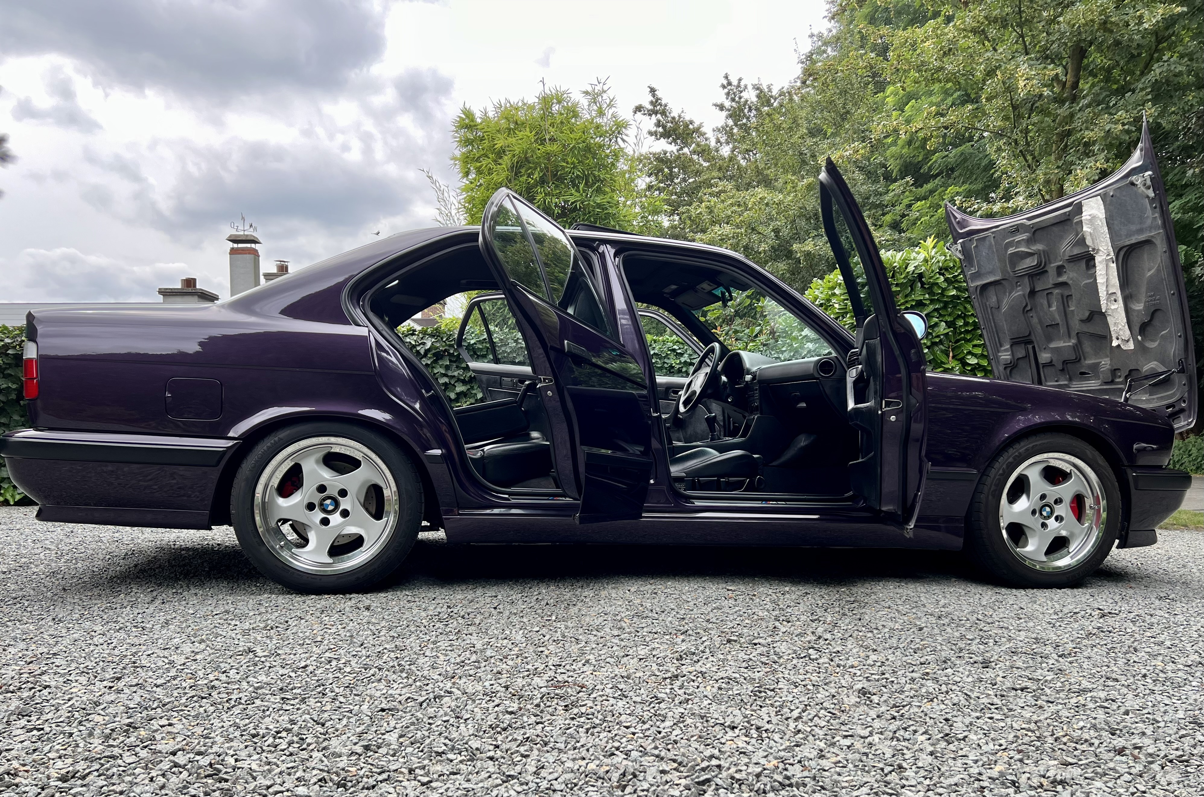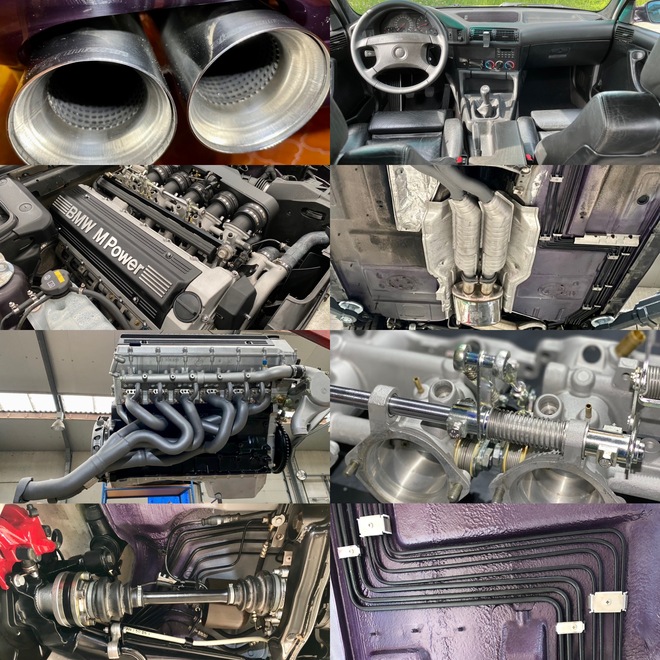 Wiechers front strut bar, trunk strutbar, Supersprint mid-pipe + Eisenmann exhaust, Brembo 4-pot Big Red front brakes, M aero panels painted body colour, front armrest, CD43, rear parcel shelf and headliner in Alcantara.