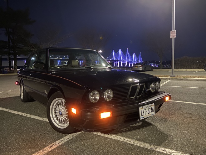 | Father/son restoration in progress in our garage, being brought back to “driver” condition (full thread on www.mye28.com). Saved from Cash For Clunkers in 2009 and taken from Connecticut to Texas, where it stayed until we acquired it in 2021 and then brought it back to New York. 204,000 miles as of 2022. Previously owned by Jim Moffit (RIP). Back on the road as of August, 2024. Look at her shine! |